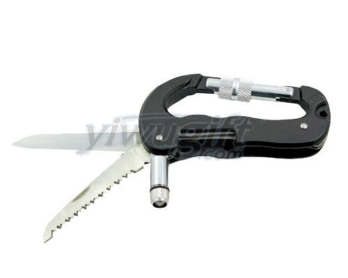 登山扣Mountaineering buckle产品规格: 8.8*4.7*1.6cm产品净重:80g纸盒尺寸: 27.5*22.5*25.5cm装 箱 率: 120PCS毛/净 重:11/10 KGS体 积 : 0.016CBM功能:小刀,鱼鳞括除器,LED电筒,登山扣